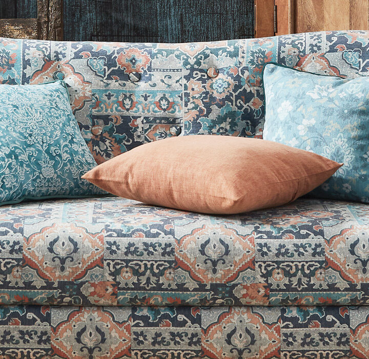 Digital print fabrics are made by printing different designs on pre-treated cloth material. Digital print fabrics are best suited for large motifs, multicolour unique designs and customizations. You can easily customize digital prints according to the room. For example, you can have a cartoon printed fabric used for your kids’ room upholstery and curtains or a spiritual print for your worship room.